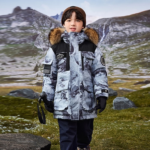 Kinder Unisex Daunenjacke Outdoorjacke Oberbekleidung Einfarbig Tarnung Langarm Tasche warm halten Winddicht Mantel Outdoor Täglich Basic Schwarz Rote Orange Winter 5 Jahre