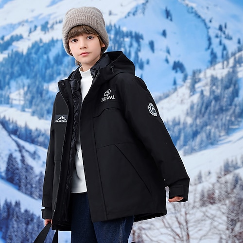 Kinder Mädchen Daunenjacke Outdoorjacke 3-in-1-Jacke Daunenjacke Buchstabe Sport Tasche WASSERDICHT warm halten Winddicht Outdoor Mantel Oberbekleidung 6-12 Y Winter Schwarz Rote Grün