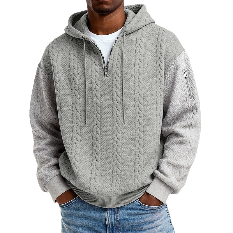 Men's Jacquard Hoodie Quarter Zip Hoodie ApricotGray Light BlueBlack WhiteLight Gray Light GreenNavy Blue Light BluePurple Hooded Plain Textured Casual Daily Sports Outdoor Streetwear Cool