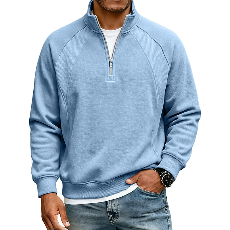 Men's Sweatshirt Corduroy Pullover Hoodie Sweatshirt Quarter Zip Sweatshirt Apricot Black White Light Green Green Standing Collar Plain Zip Up Textured Casual Daily Sports Outdoor Streetwear Cool