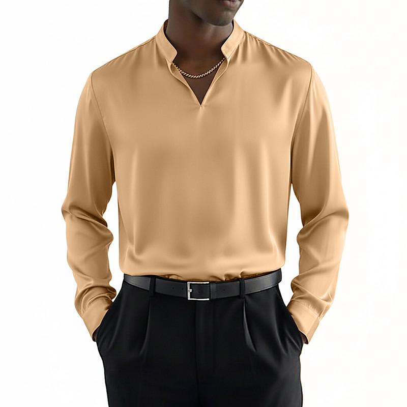 Men's Shirt Satin Shirt Dress Shirt Casual Shirt Button Up Shirt Prom Shirt Plain Wedding Formal Black White Navy Blue Royal Blue Long Sleeve V Neck All Seasons Clothing Apparel Plain