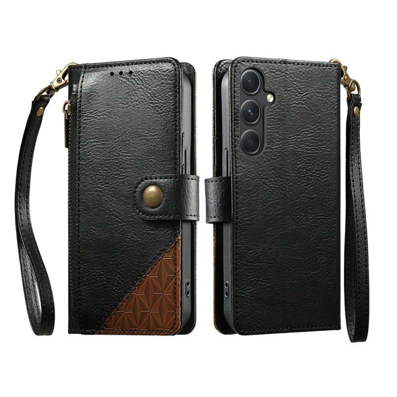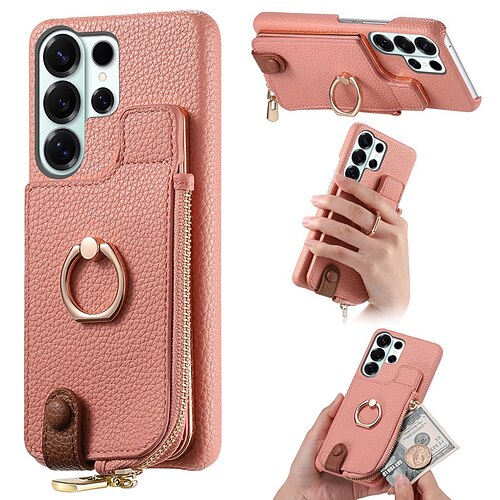 Handy Hülle Handyhüllen Für Samsung Galaxy S26 S26 Plus S26 Ultra Rückseite Brieftaschenhülle Mit Ständer Reisverschluss Ständer Retro TPU PU-Leder