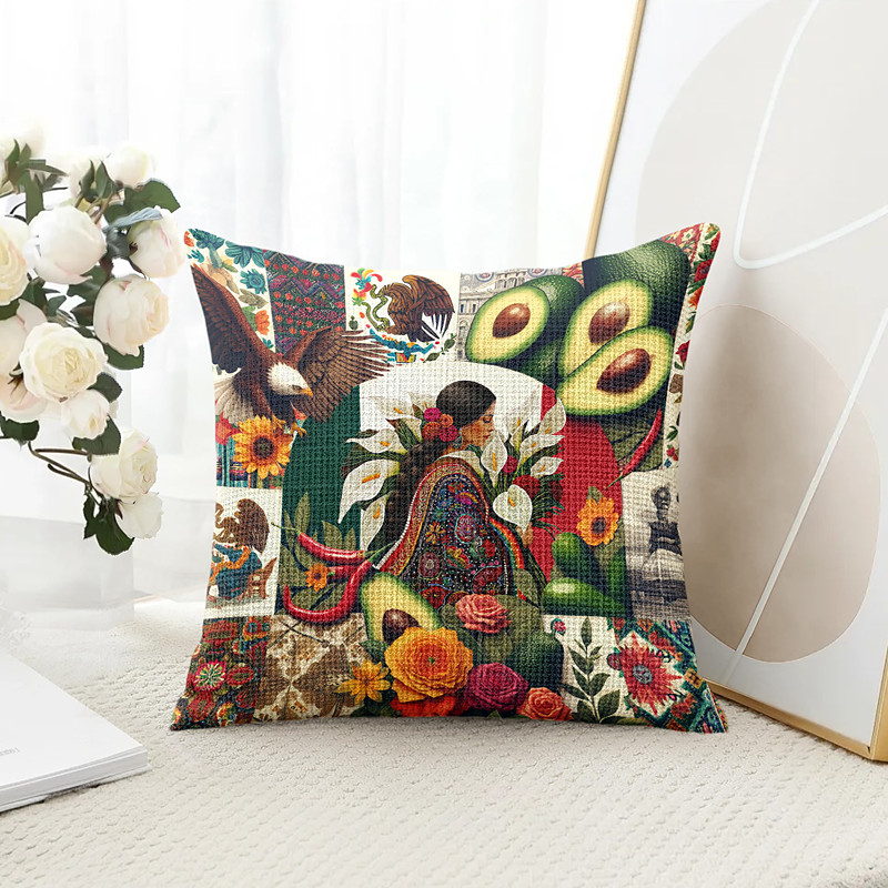Mexican Quilting Pattern Decorative Toss Pillows Cover 1PC Soft Square Couch Cushion Case Pillowcase for Bedroom Livingroom Sofa Chair