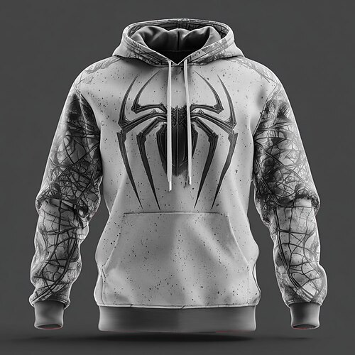 Herren Spinne 3D Kapuzensweatshirt Pullover Cool Party Langarm Rundhalsausschnitt Club Streetwear Schwarz 1 Schwarz Schwarz 2 Kordelzug Herbst Winter Designer S M L XL XXL XXXL