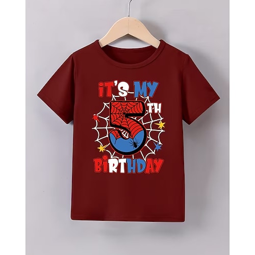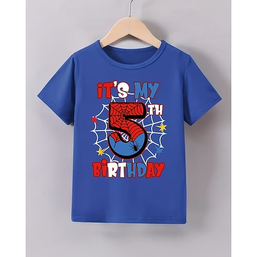 Unisex Jungen 3D Grafik Spinne Es ist mein 5. Geburtstag T-Shirt Kurzarm 3D-Druck Sommer Frühling Sport Mode Streetwear Kinder 4-12 Jahre Rundhalsausschnitt Lässig Täglich Outdoor Normale Passform