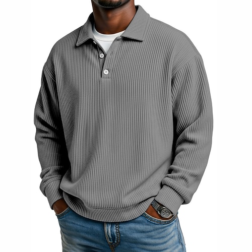 Per uomo Camicia di Velluto a Coste Testurizzato Casuale Sportivo Bavero Manica Lunga Moda Essenziale Tinta unica Bottoni Caldo Autunno Inverno Vestibilità regolare Nero Blu scuro Grigio Blu chiaro