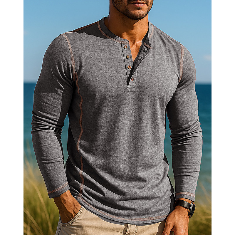 Men's Casual Shirt Hiking top Henley Shirt Long Sleeve Top Outdoor Breathable Cotton Black White Army Green Tennis Golf Running
