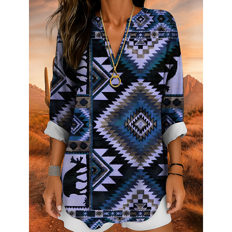 Women's Blouse Tunic V Neck Long Sleeve Boho Casual Tops 3D Print Floral Graphic Vintage Tropical Regular Tops Daily Wear Print White Yellow Pink Blue Khaki