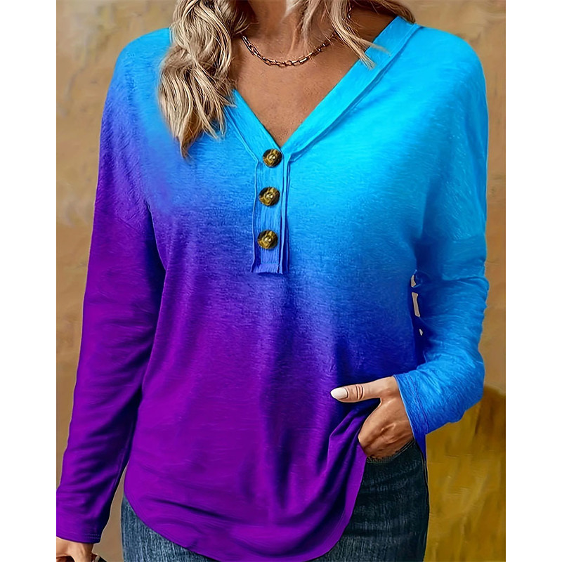 Women's T Shirt Summer Tops Solid Color Ombre Elegant Fashion Classic Long Sleeve V Neck Regular Tops Daily Going out Weekend Patchwork Buttons Violet Spring Fall