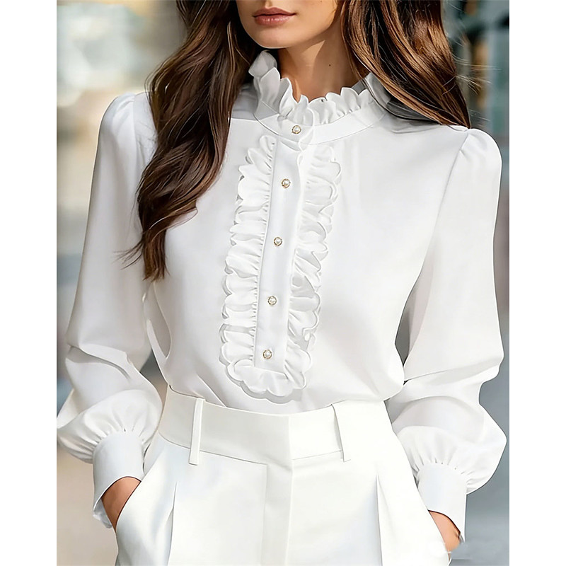 Women's Shirt Dressy Tops Plain Elegant Ladies Stylish Long Sleeve V Neck Regular Tops Work Daily Holiday Hollow Out Buttons White Pink Red Royal Blue Purple Spring Fall