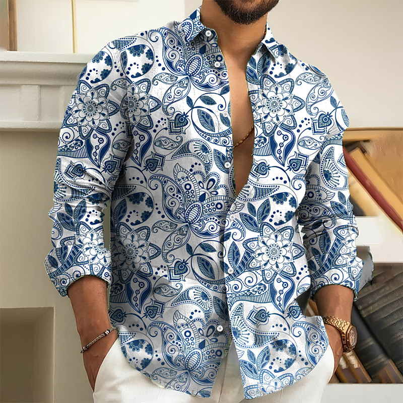 Men's Paisley Floral Print Ethnic Shirt Button Up Shirt Long Sleeve Vintage Retro Holiday Casual Daily Spring Fall Turndown 3D Print Collared Shirts Blue Purple Gold