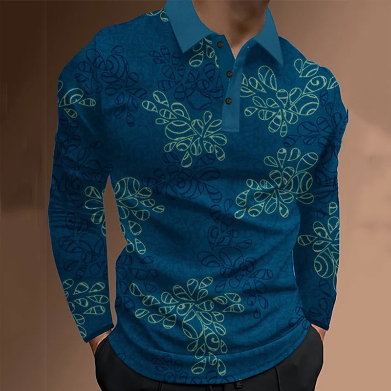 Men's Geometic Line Polo Long Sleeve Polo Shirts Lapel Business Casual Athleisure Daily Wear 3D Print Buttons Spring Fall Winter Blue Purple Green