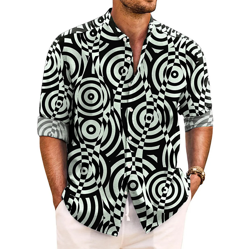 Men's Geometric Circle Abstract Art Shirt Stand Collar Shirt Long Sleeve Fashion Casual Dailywear Holiday Spring Fall Mandarin Collar Band Collar 3D Print Button Up Shirts Pink Light Purple Green