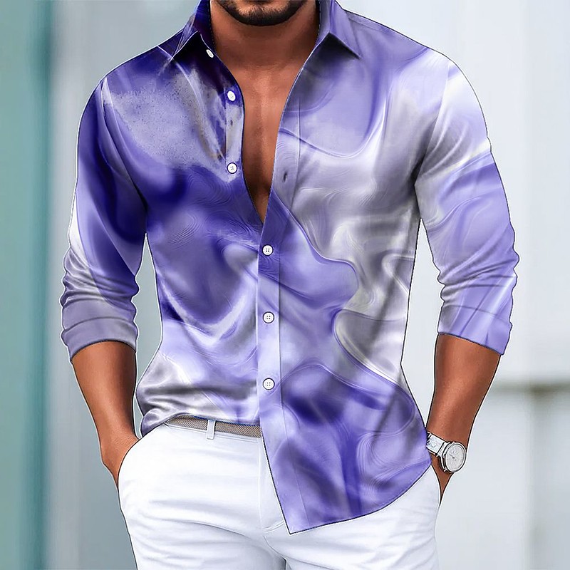 Men's Geometric Gradient Color Abstract Liquid Art Shirt Satin Shirt Dress Shirt Long Sleeve Business Casual Vacation Dailywear Summer Spring Fall Turndown 3D Print Button Up Shirts Blue Pink Purple