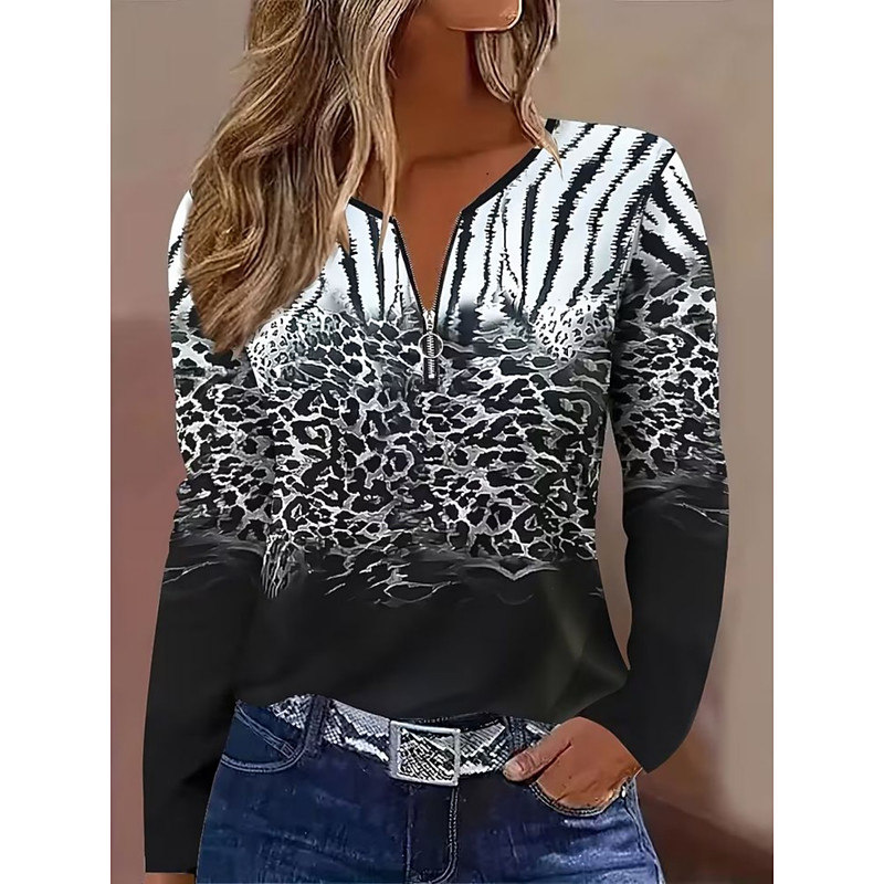 Women's T Shirt Graphic Vintage Bohemia Tropical Hawaiian Long Sleeve V Neck Regular Tops Daily Going out Weekend Zipper Print Black and White Summer Spring Fall Winter