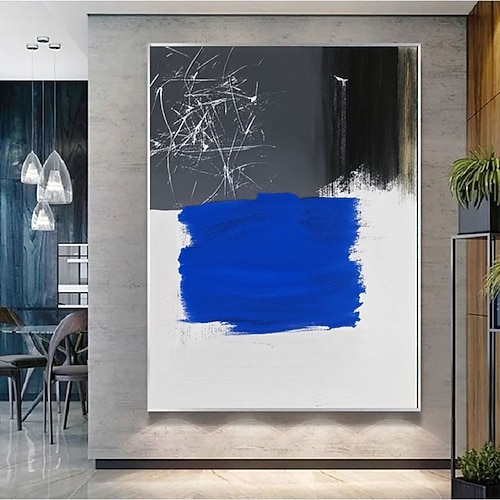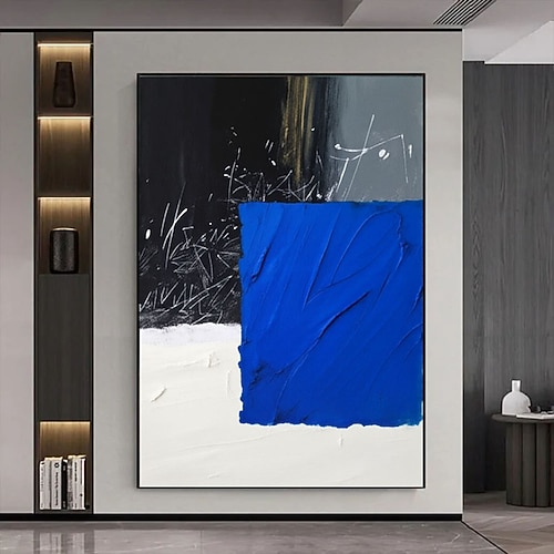 Großes abstraktes Gemälde, handgemalte Wandkunst, blaue Texturmalerei, blaue abstrakte Wandkunst, großes schwarz-blau-weißes abstraktes Gemälde, Boho-Wohnzimmer-Wanddekoration