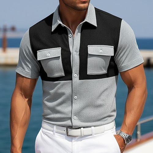 Per uomo Camicia da golf Golf polo da golf Ufficio Informale Bavero Manica corta Essenziale Moderno Color Block Collage Pulsante Primavera estate Standard Nero Bianco Rosa Verde militare Azzurro