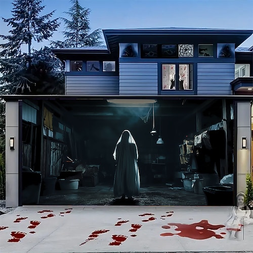 Halloween arazzo Copertura per porta del garage Grande appeso Fantasma 3D Gotico punk oscuro Da serata All'aperto Sfondi di ripresa Yarda Casa infestata Decorazioni Parete Porta Sfondo