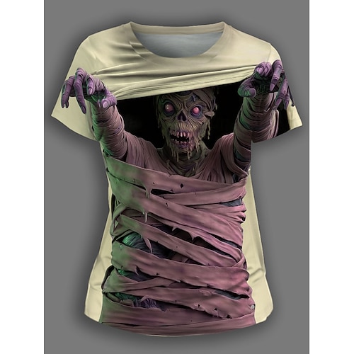 T-Shirt da donna Grafica Teschi Vintage Elegante Casual Maniche Corte Collo Giro Regular Tops Stampa Giornaliera Giallo Blu Viola Verde Estate