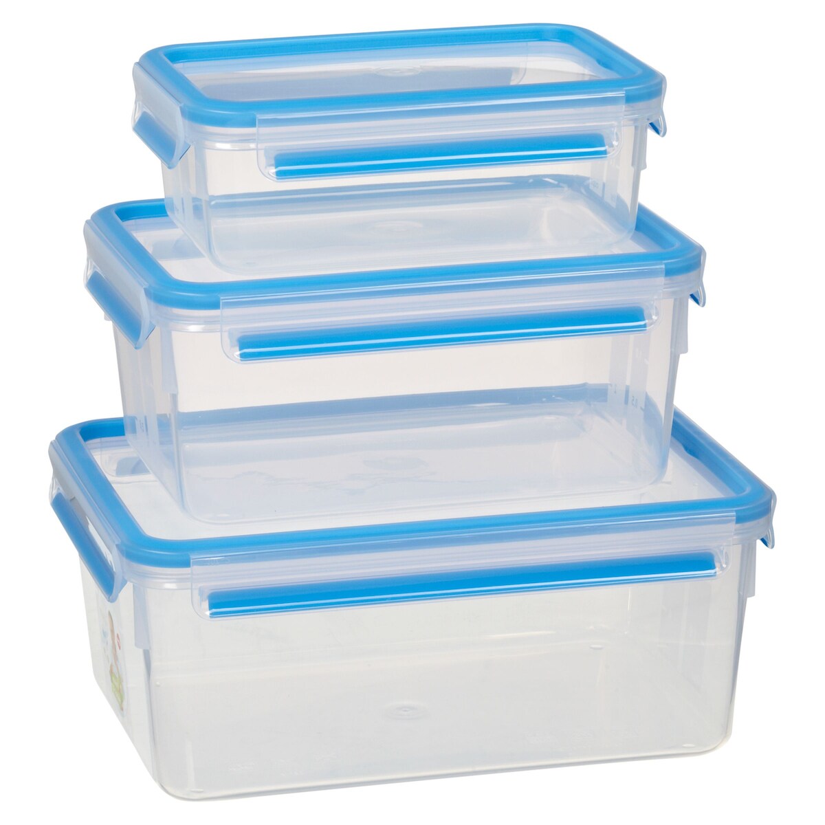 Emsa Frischhaltedosen Clip & Close 3er-Set, Polypropylen, 1/ 2.3/ 3.7 L, rechteckig, blau