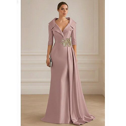 Set di abiti lunghezza fino al pavimento abito per madre della sposa maniche lunghe scollo a V elegante semplice invitata a un matrimonio con colore solido