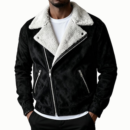 Per uomo Giacca in finta pelle scamosciata Giacca Sherpa Giacca in Camoscio Marrone Casuale Quotidiano Calore Termico Tasca Autunno Inverno Attivo Vintage Regolare Nero Marrone Grigio Giacca