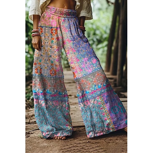 Per donna Gamba larga Pantaloni Pantaloni Palazzo Moda Boho Lunghezza intera Vita Alta Fiore Coulisse Elastico in vita Stampato Traspirabilità Confortevole Streetwear Abbigliamento quotidiano Uscire