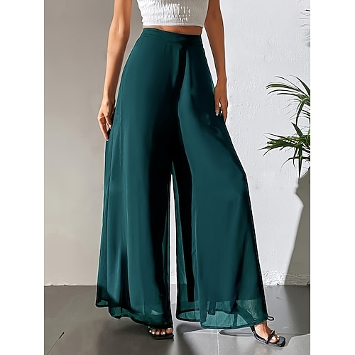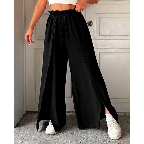 Per donna Gamba larga Chinos Elegante Vacanza Streetwear Lunghezza intera Vita media Semplice Coulisse Spacco Confortevole Micro-elastico Quotidiano All'aperto Vacanza Nero Verde Cachi Acquamarina