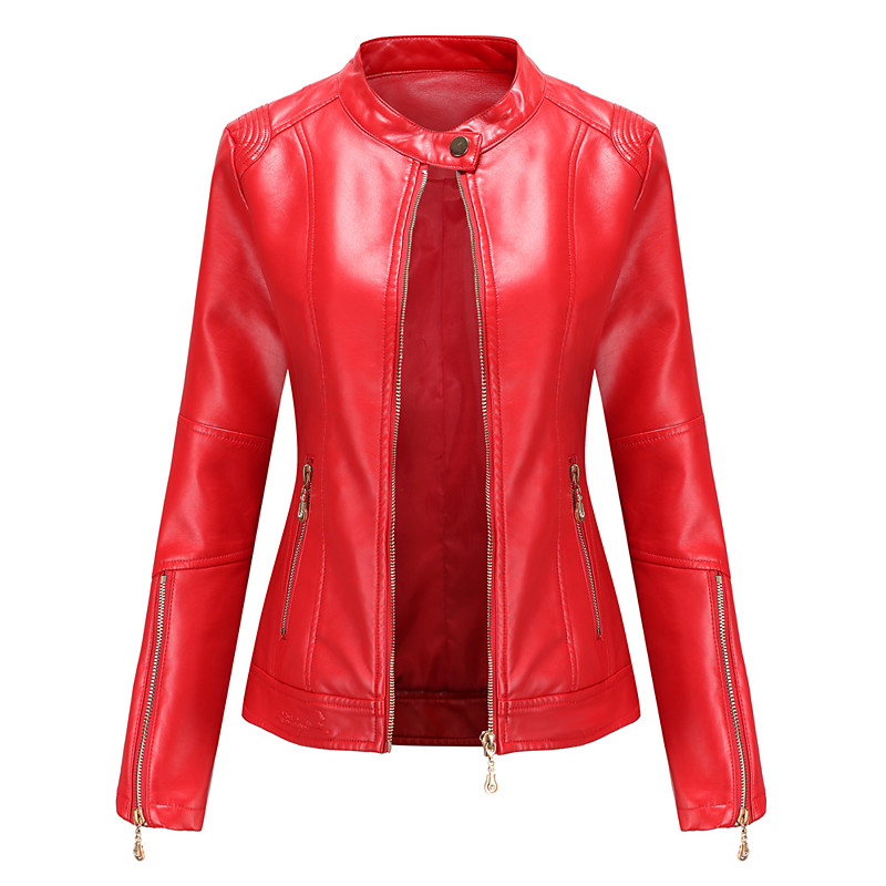 Women's Faux Leather Jacket Biker Jacket Comfortable Pocket Full Zip Fashion Street Style Plain Outdoor Casual Daily Regular Stand Collar Regular Fit Long Sleeve Outerwear Red Green Beige Fall Winter