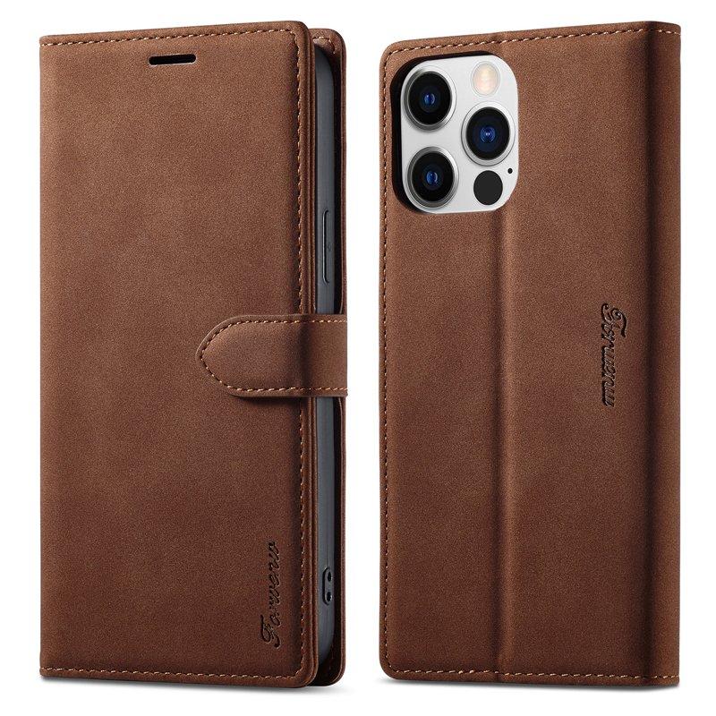 FORWENW F1 Series iPhone 15 Pro Max Plånboksfodral Konstläder - Brun