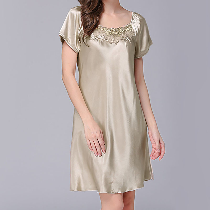 Women's Loungewear Nightgown Fashion Casual Soft Pure Color Patchwork Dress Home Vacation Short Sleeve Crew Neck Lotus Pink Pink Red Camel Summer Spring Fall Regular Fit
