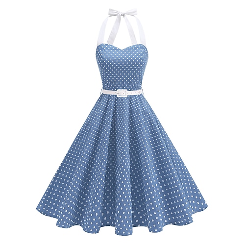 Retrò Vintage Anni 1950 Midi Vestito Guanti Abito da cocktail Tinta unica Linea ad A Costume Per donna San Valentino Mascherata Mascherata Data Festa / Cocktail Adulti Vestito Guanti Abiti per il