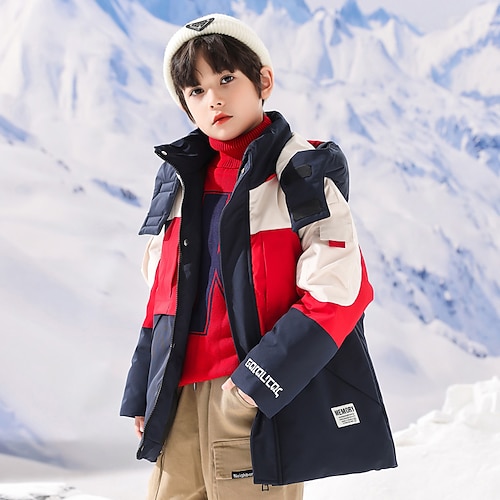 Kinder Jungen Daunenjacke Outdoorjacke Kapuzenjacke Daunenjacke Oberbekleidung Farbblock Langarm Tasche warm halten Winddicht Mantel Outdoor Täglich Basic Schwarz Weiß Rote Winter Ab 4 Jahren