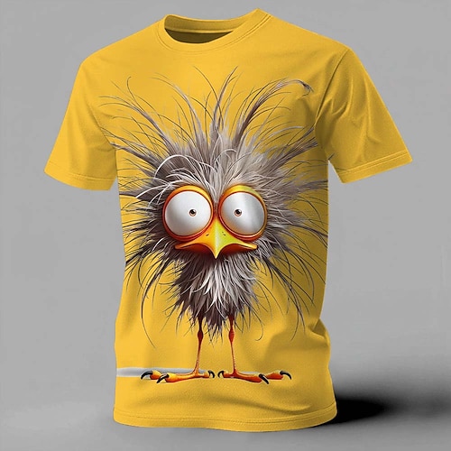 Maglietta da uomo 3D divertente con uccello pazzo e grandi occhi di struzzo, t-shirt grafiche con piume disordinate, stampa a maniche corte, abbigliamento casual estivo, abbigliamento S M L XL XXL