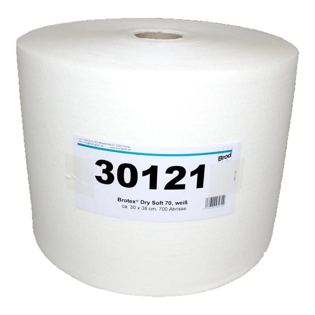 Brotex® Dry Soft 70, Airlaid Wischtuchrolle einseitig geprägt, weiß, 90 % Zellstoff, 10 % VAT-Binder, ca. 30x38 cm, 700 Blatt