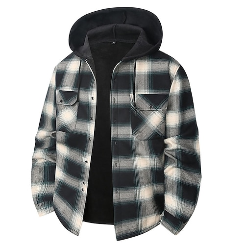 Per uomo Giacca-camicia Giacca camicia Giacca invernale Plaid Vacanza Abbigliamento quotidiano Bianco Rosso Blu Arancione Manica Lunga Con Cappuccio Autunno Inverno Abbigliamento Tasca Frontale