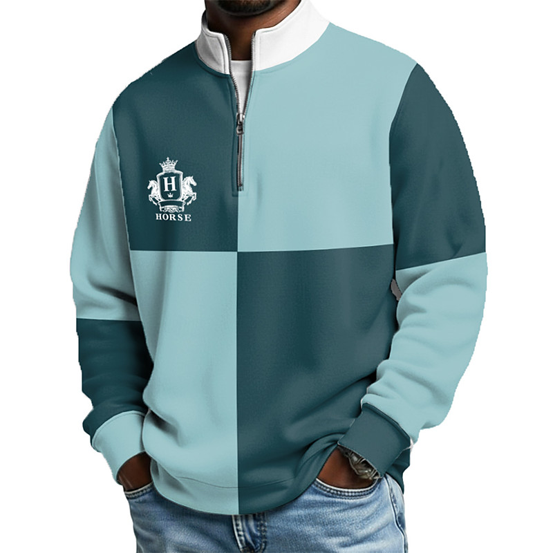 Men's Color Block Zip Polo Shirts Long Sleeve Polo Shirts Grandad Collar Casual School Athleisure Holiday Daily Wear 3D Print Quarter Zip Polo Spring Fall Blue Brown Green
