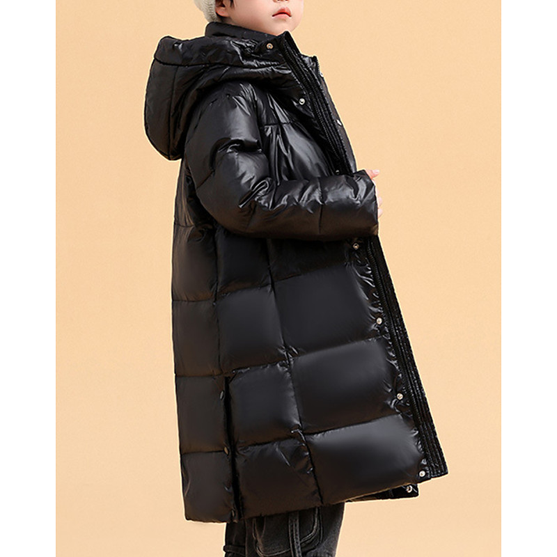 Kids Boys' Down Coat Puffer Jacket Outerwear Kids Puffer Jacket Solid Color Long Sleeve Pocket Buttons Coat Outdoor Cool Daily Black Winter 7-13 Years