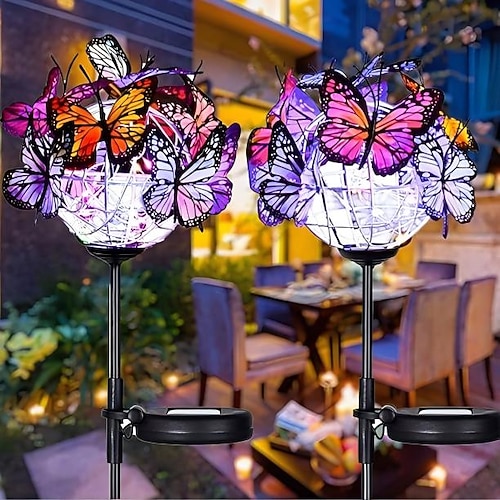 Schmetterlings-Solar-Gartenleuchte (1er-Pack), wasserdichte Solar-Gartenleuchte mit Erdspieß, dekorative Schmetterlings-Kugellampe für Terrasse, Garten, Rasen, Geschenkidee für Frauen und Mütter