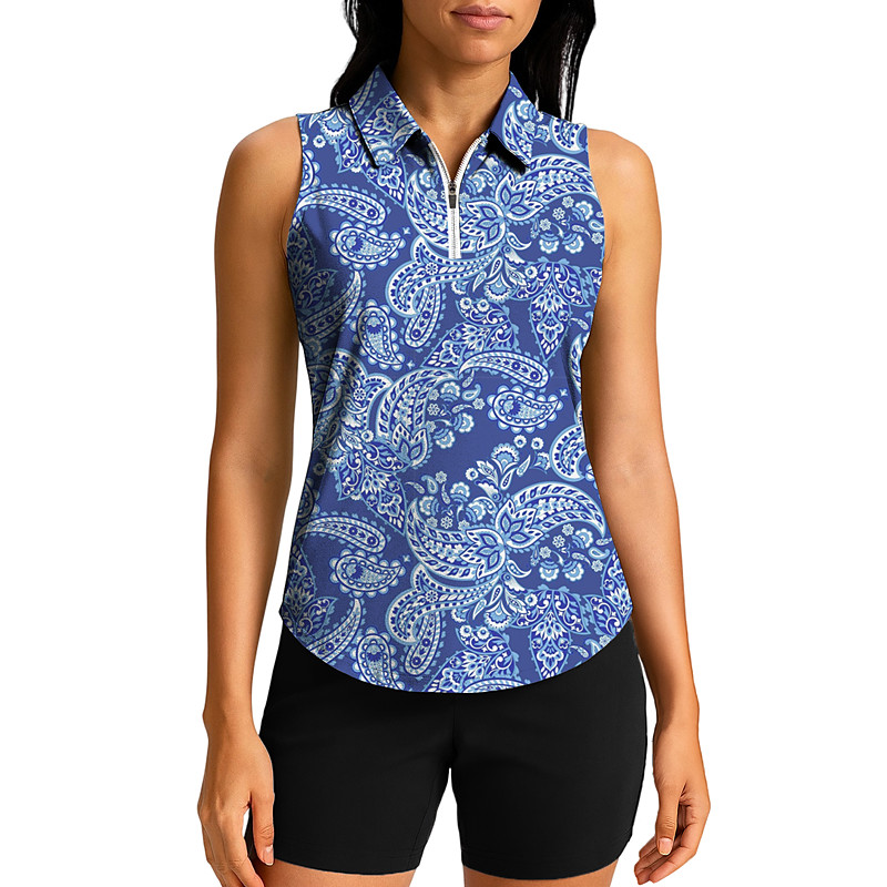Women's Floral Tops Sport Shirt Golf Polo Shirt Tennis Shirt Sleeveless Zipper UPF50 UV Resistant High Elasticity Moisture Wicking Breathable Tennis Pickleball Running Turndown Zip Collar Shirt Tank