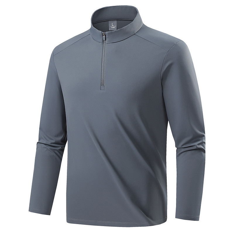 Men's Hiking Shirt Hiking top Quarter Zip Shirt Long Sleeve Stand Collar Top Outdoor UV Sun Protection Quick Dry Breathable Nylon Dark Grey Black Light Grey Tennis Golf Running