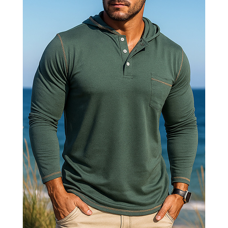 Men's Casual Shirt Hoodied Shirt Long Sleeve Hooded Top Outdoor Breathable Cotton Black Blue Green Tennis Golf Running