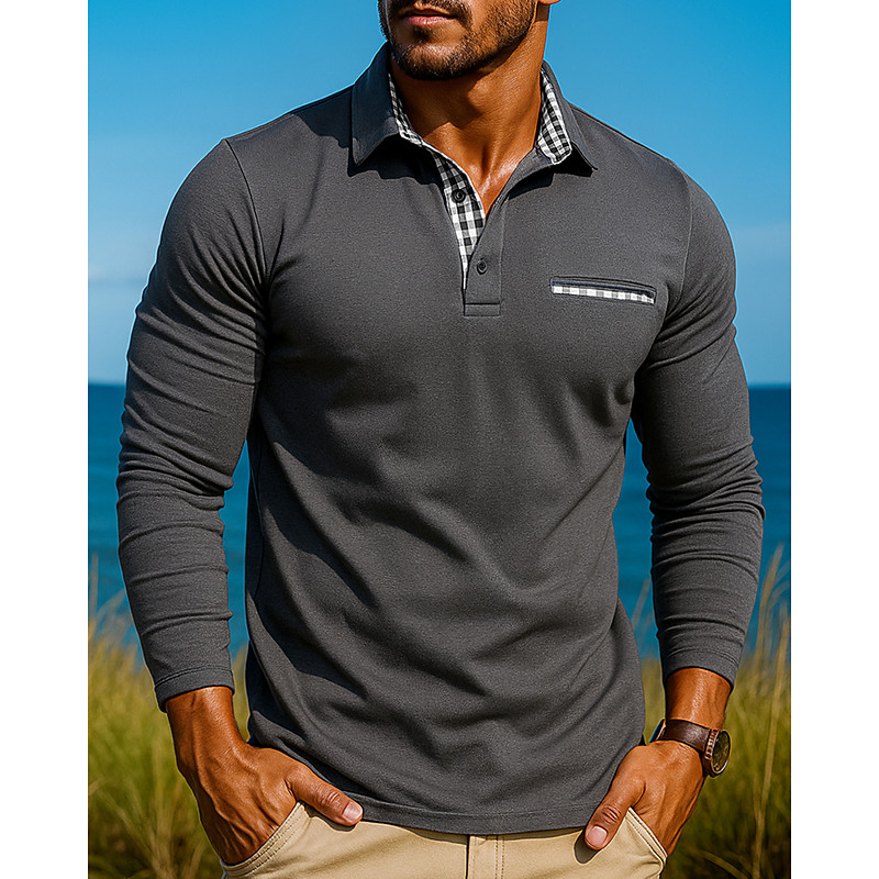 Men's Hiking Shirt Henley Shirt Long Sleeve Henley Collar Top Outdoor Breathable Winter Cotton Blend Patchwork Blue Khaki Dark Blue Tennis Golf Running
