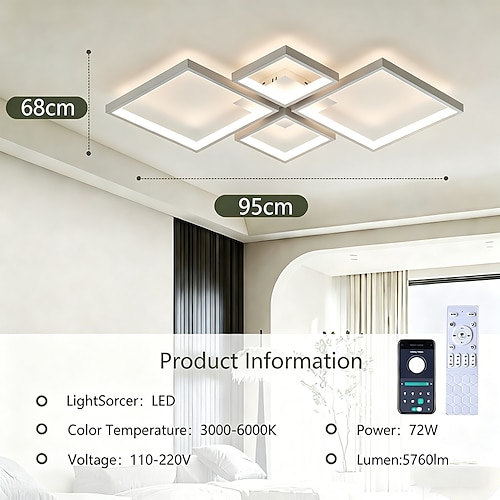 Plafoniera 1 luce 60/80 cm led forme geometriche luci da incasso metallo finiture verniciate stile nordico moderno ufficio soggiorno 220-240v solo dimmerabile con telecomando