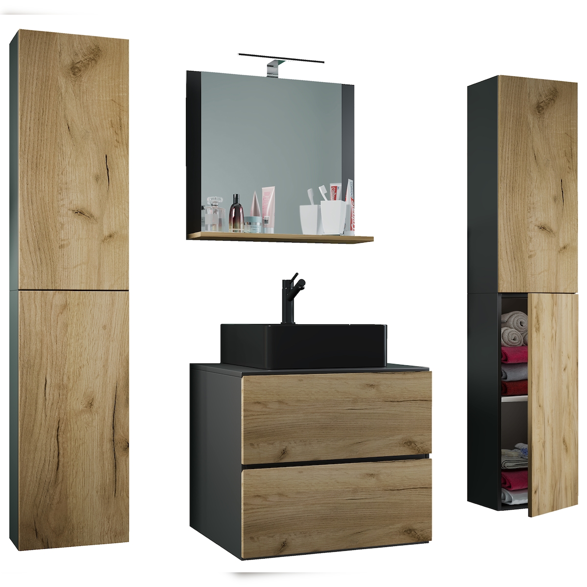 VCM Badmöbel Waschtisch Lendas Anthrazit / Honig-Eiche H. 150 x B. 127 x T. 52 cm