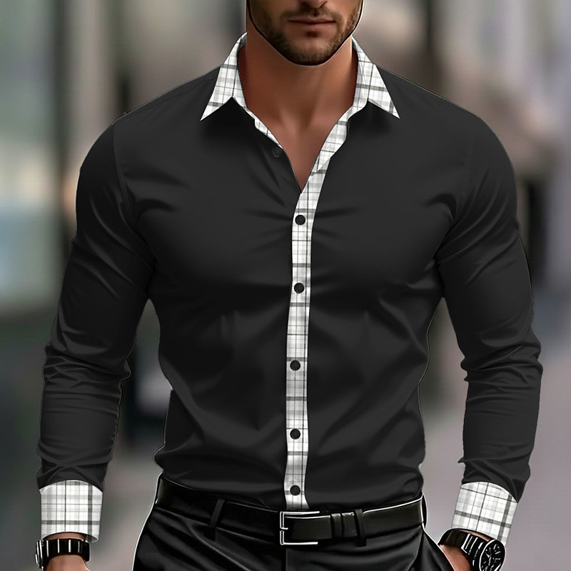 Men's Geometric Grid / Plaid Shirt Button Up Shirt Casual Dress Shirt Long Sleeve Fashion Casual Outdoor Dailywear Spring Fall Turndown 3D Print Collared Shirts Blue Black White Wine Dark Blue