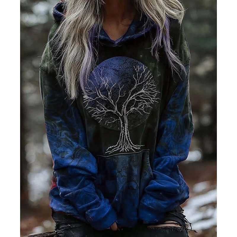 Women's Pullover Hoodie Sweatshirt Graphic Animal Tribal Punk Vintage Metallic Long Sleeve Hooded Regular Tops Street Dailywear Casual Blue Dark Red Orange Green Spring Fall Winter