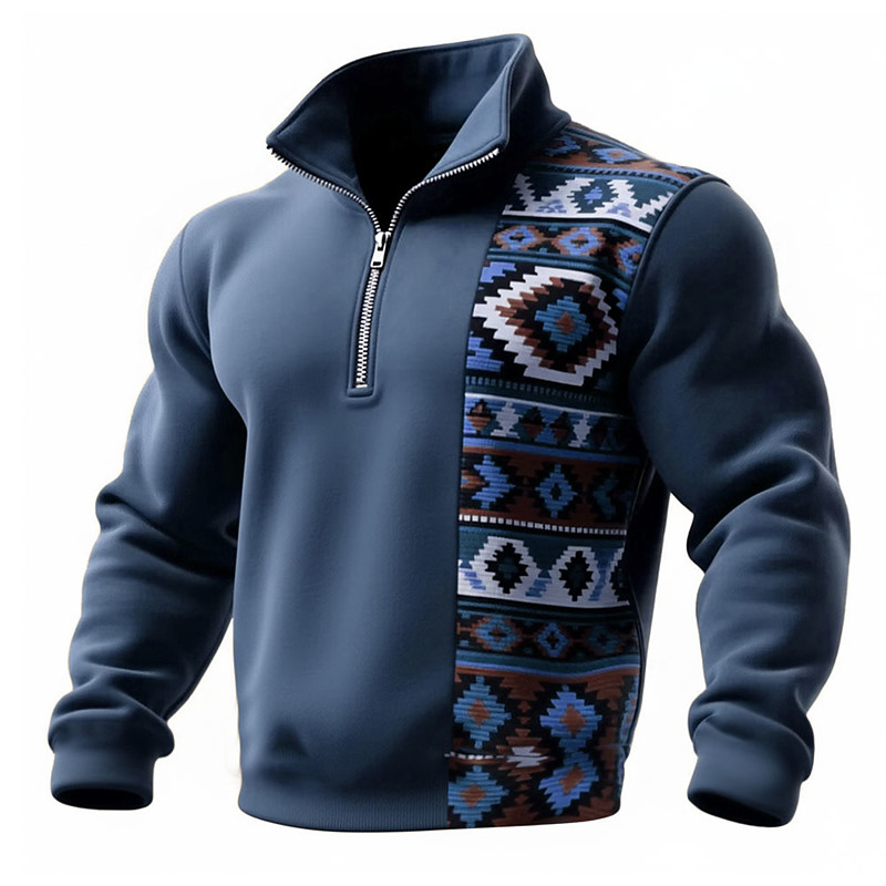 Men's Sweatshirt Quarter Zip Sweatshirt Black Navy Blue Brown Gray Half Zip Color Block Tribal Patchwork Sports Outdoor Daily Holiday Polyester Basic Ethnic Casual Fall Winter Clothing Apparel