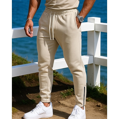 Per uomo Pantaloni attivi Pantaloni della tuta Pantaloni Tasche A cordoncino Vita elastica Liscio Comfort Sportivo Giornaliero Di tendenza Informale Cáqui Escuro Cachi chiaro Media elasticità