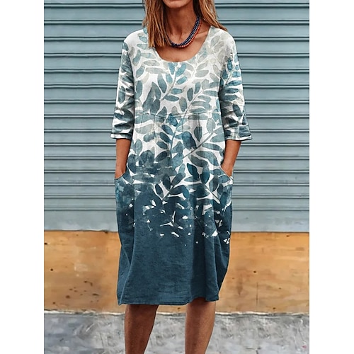 Per donna Abito Midi Vestito Casual Abito Floreale Elegante Casual All'aperto Spiaggia Vacanza Vestibilità comoda Floreale Leopardo Colore Puro Mezza Manica Girocollo Nero Viola Fucsia Verde
